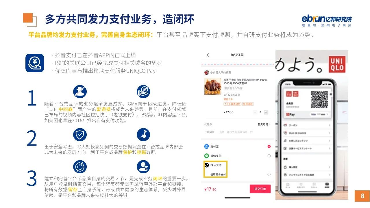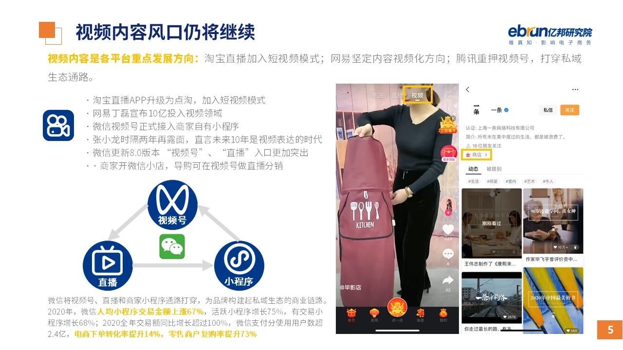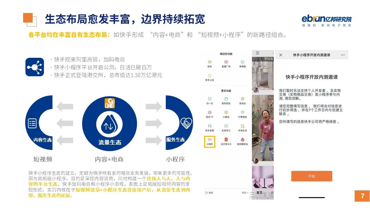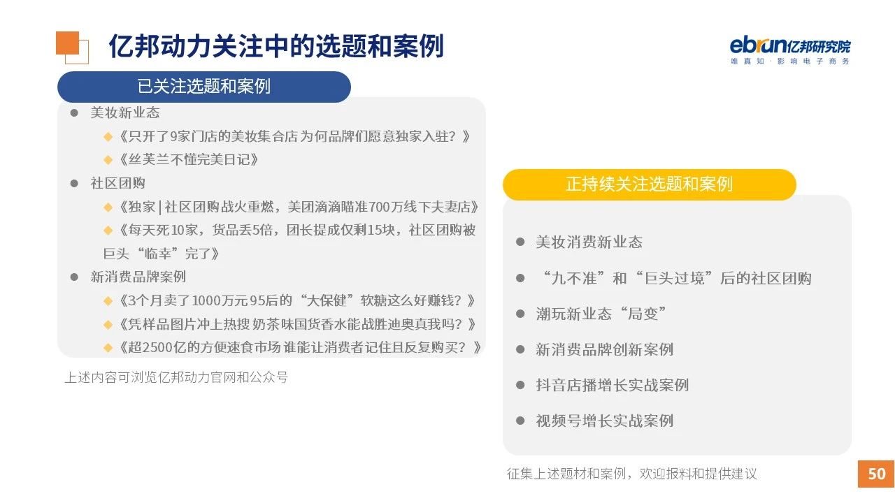 縱觀2021年1月,各平臺(tái)豐富自有生態(tài)布局,如淘寶直播(點(diǎn)淘)加入短視頻模式、騰訊重押視頻號(hào)、快手加碼電商和小程序、抖音推出支付等;視頻內(nèi)容成為各平臺(tái)未來重點(diǎn)發(fā)力方向;“九不得”新規(guī)發(fā)布后社區(qū)團(tuán)購(gòu)仍熱情不減;國(guó)家和市場(chǎng)對(duì)互聯(lián)網(wǎng)巨頭和電商相關(guān)消費(fèi)加大監(jiān)管力度……你信和不信,你知道和不知道的,都在這份億邦動(dòng)力研究院正式發(fā)布的